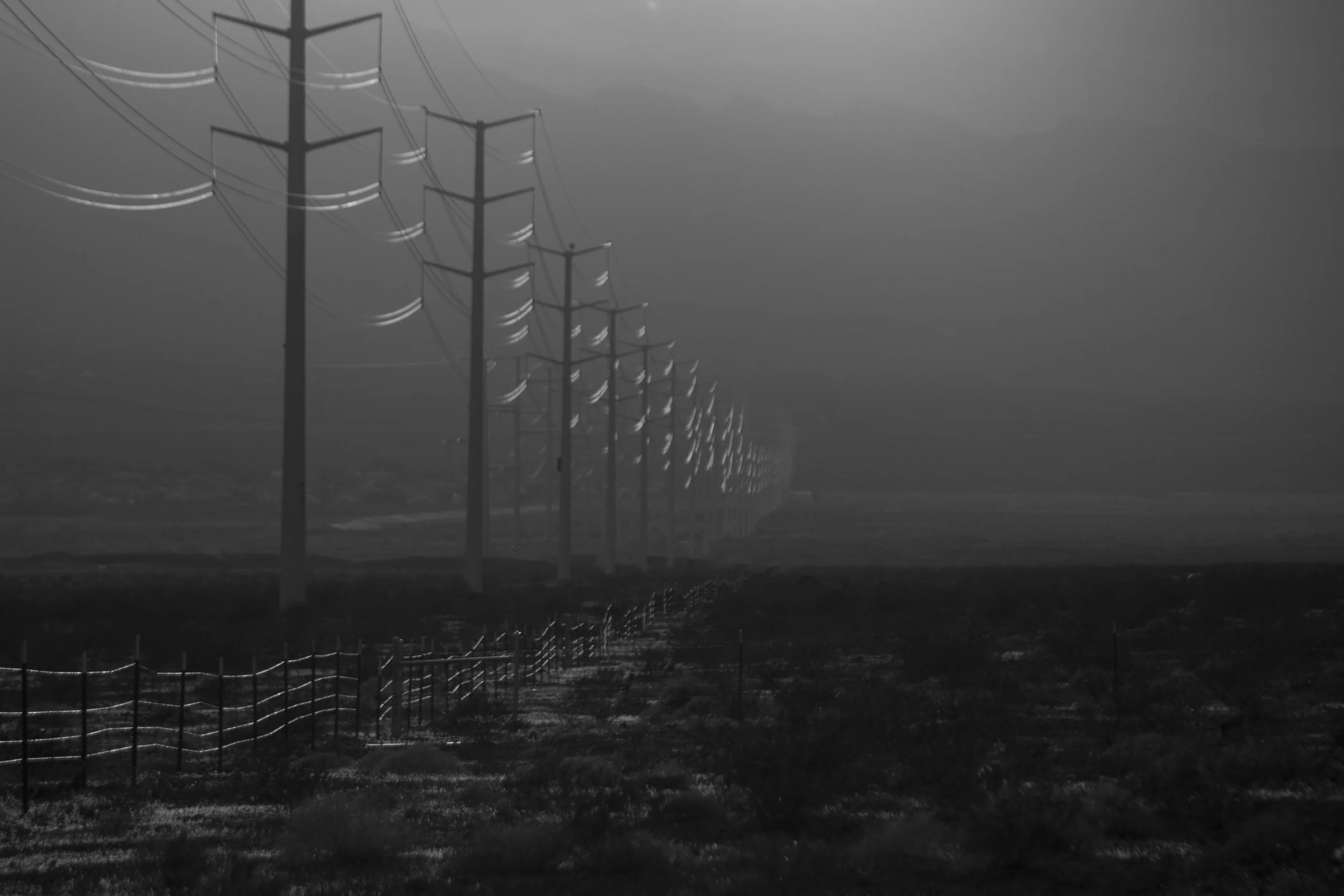 A power line along Interstate 95 near Las Vegas…Nevada is an important producer of solar energy, but this is not a point of the picture